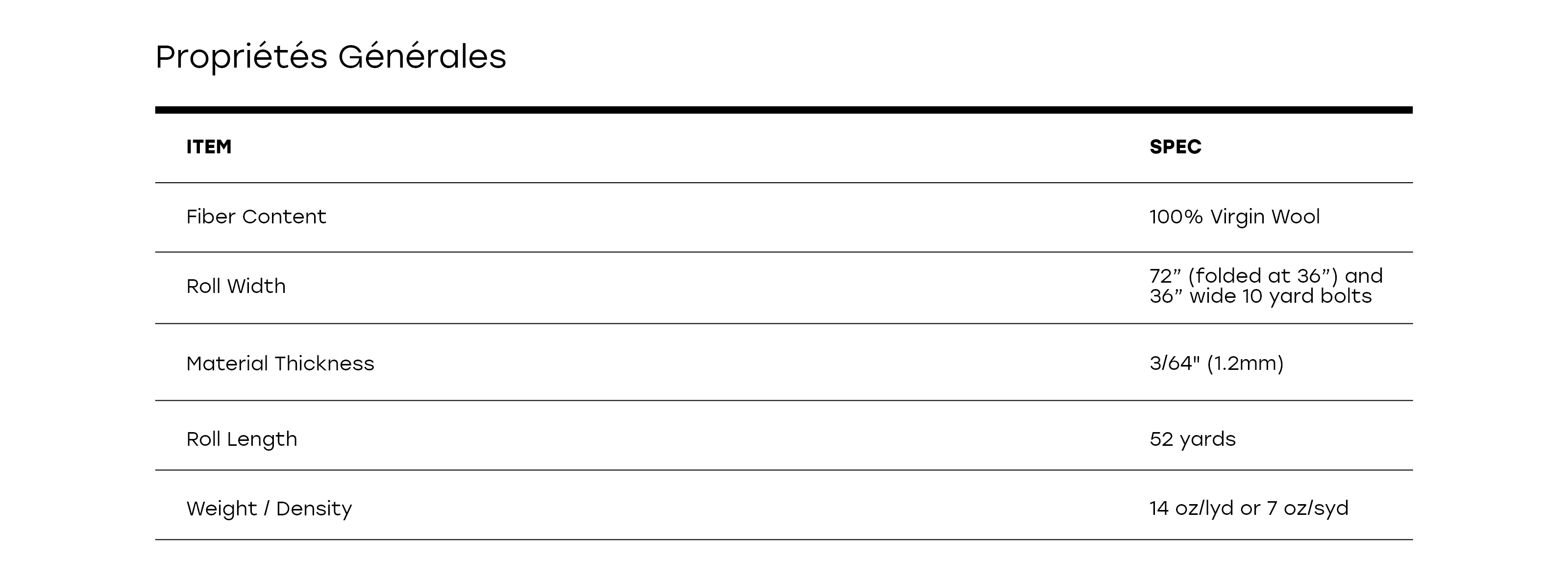 - Largeur du rouleau : 72 po (plié à 36 po; des marques de pliage peuvent être visibles)