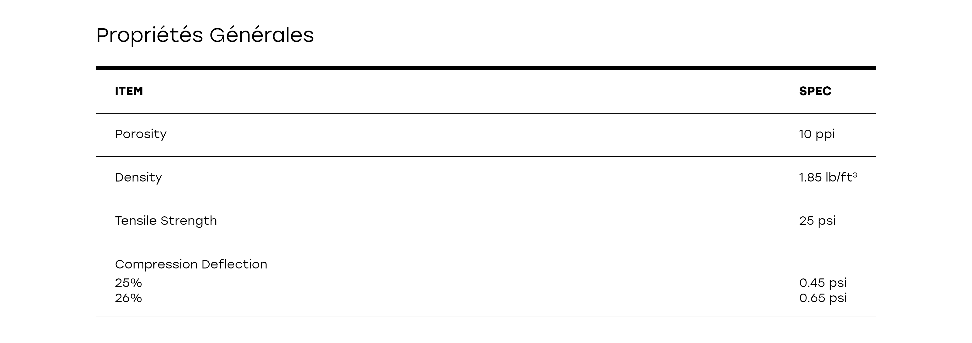 Notre mousse filtrante est une mousse polyester-uréthane réticulée, souple et à cellules ouvertes. Sa structure ouverte permet une meilleure filtration. Sa structure homogène et uniforme contribue à une efficacité de filtration constante.