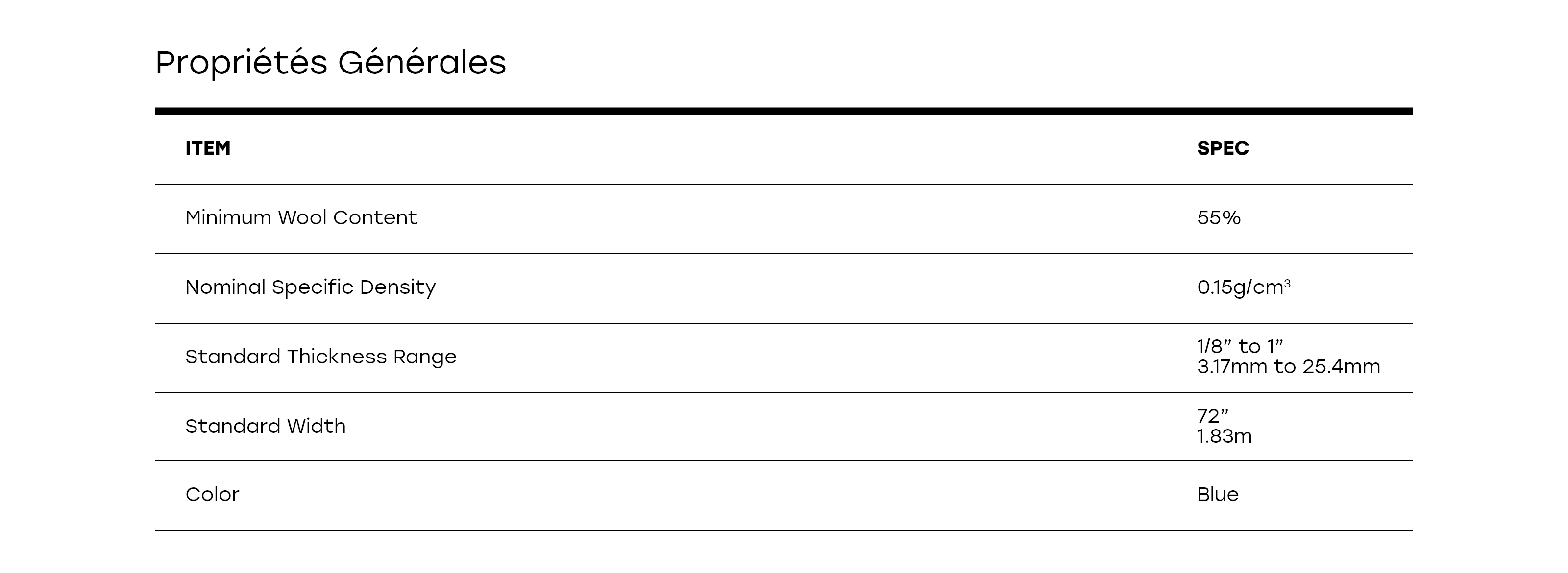 Notre 5200 est un feutre aiguilleté souple et flexible, fabriqué à partir d’un mélange de 55 % de laine et de polyester. Il épouse facilement les surfaces irrégulières et offre une résistance à la traction modérée.