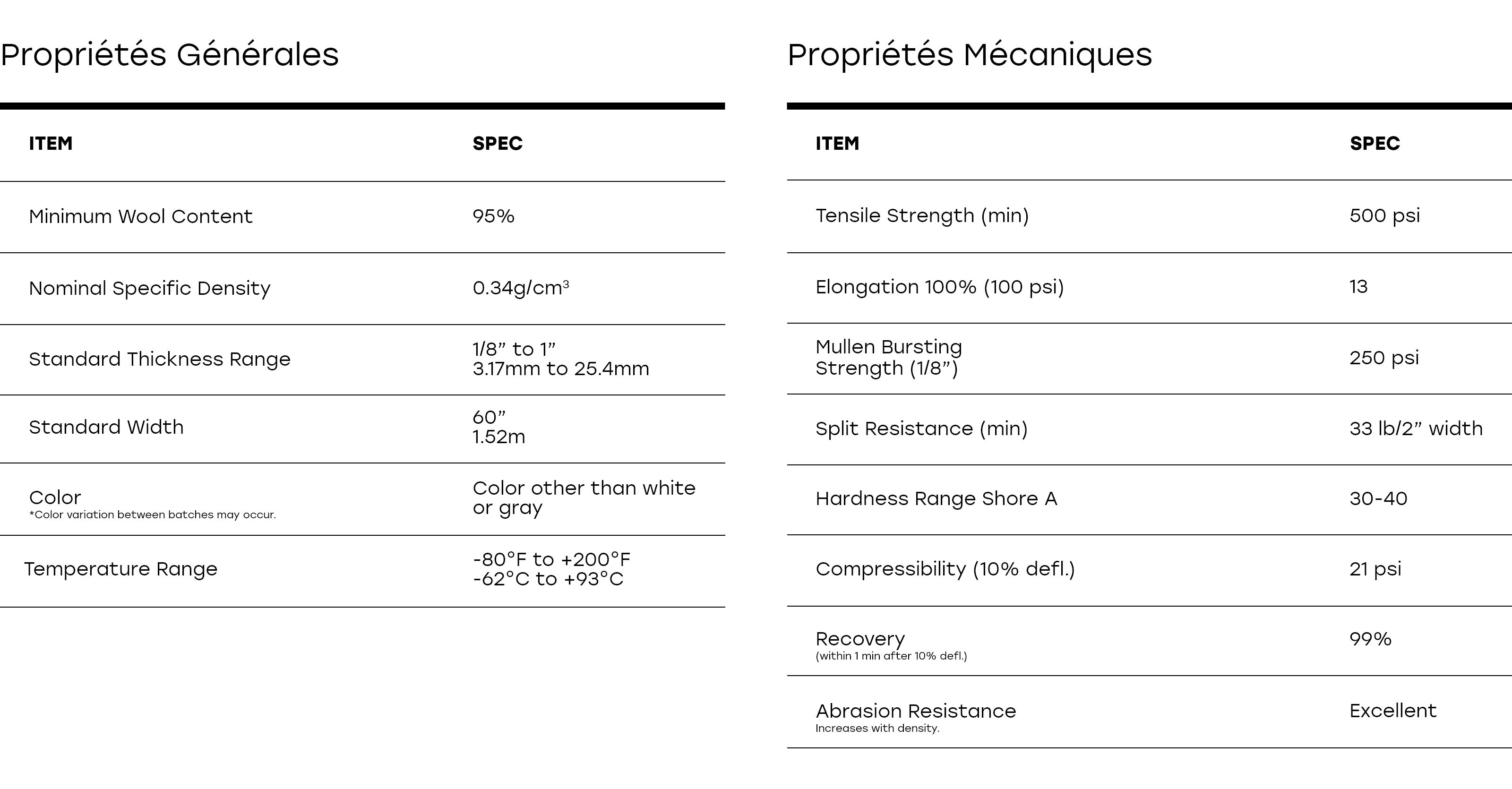REMARQUE : Les couleurs affichées en ligne ou imprimées peuvent différer légèrement du feutre réel. Si la précision de la couleur est essentielle à votre application, nous vous recommandons de demander un échantillon physique avant de passer commande.