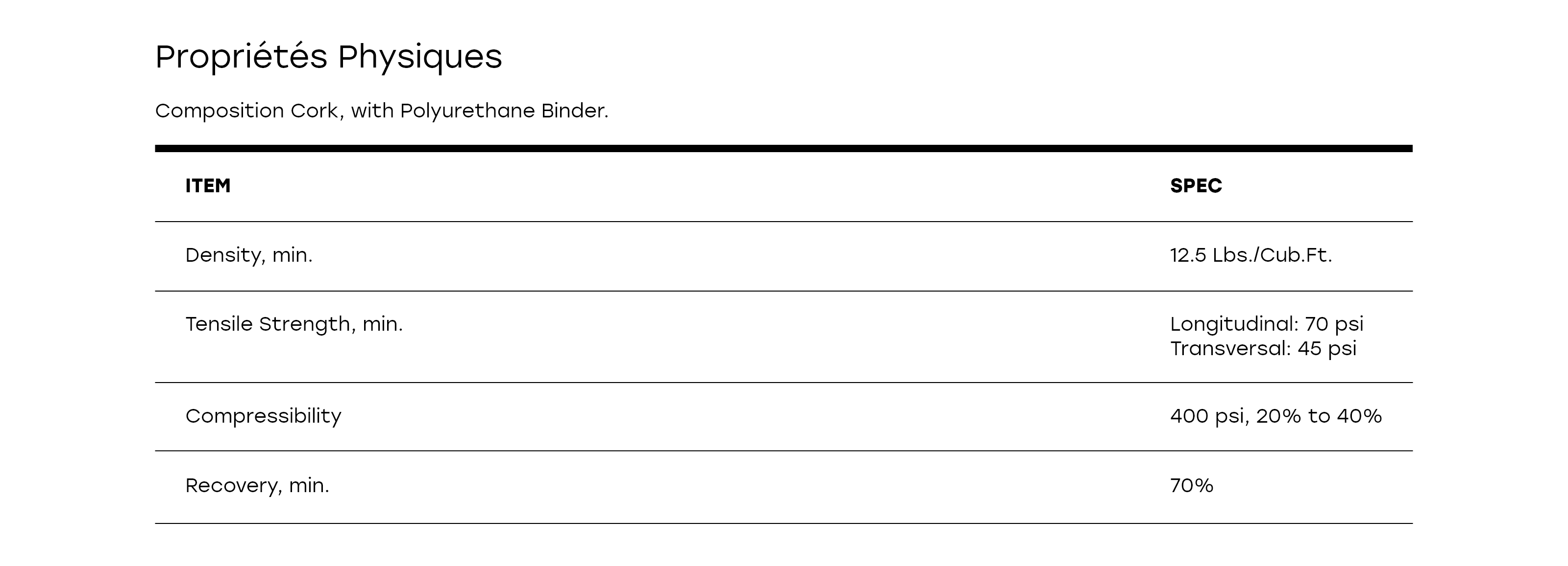 Notre liège à grain fin utilise un liant en polyuréthane et présente une densité de 12,5 lb/pi³. Il est offert avec ou sans support adhésif sensible à la pression.
