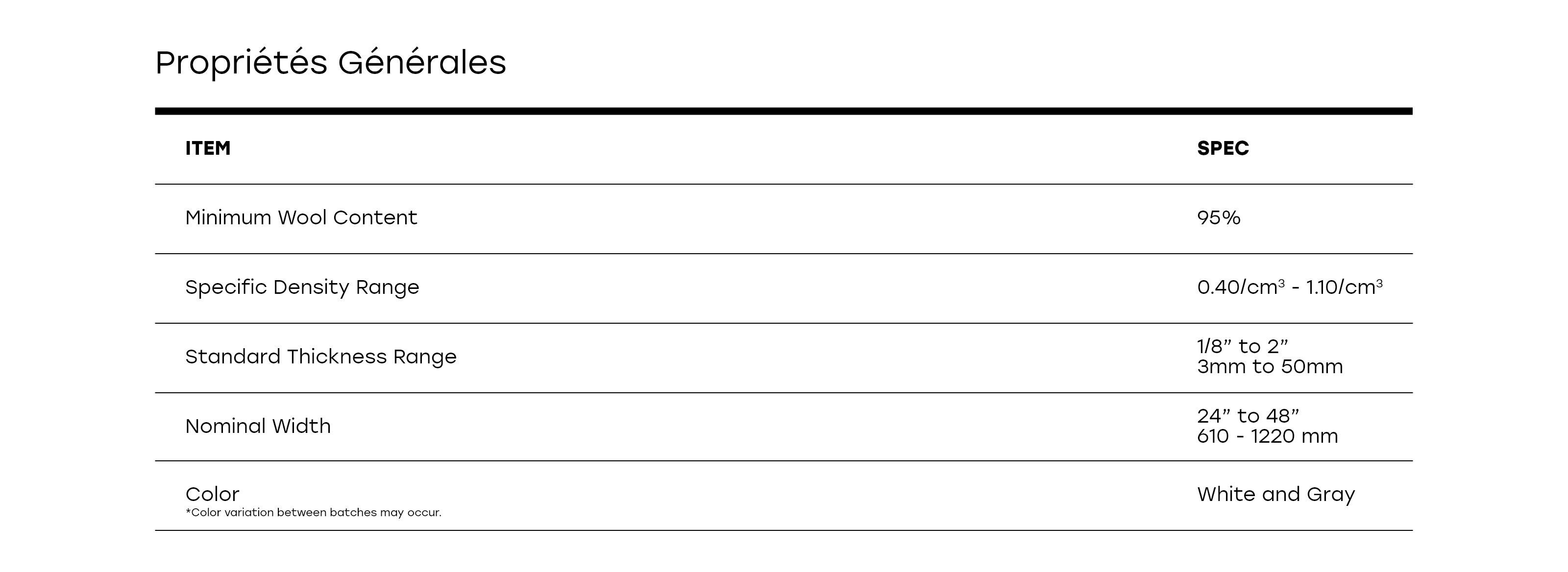 REMARQUE: Les couleurs affichées en ligne ou imprimées peuvent différer légèrement du feutre réel. Si la précision de la couleur est essentielle à votre application, nous vous recommandons de demander un échantillon physique avant de passer commande.