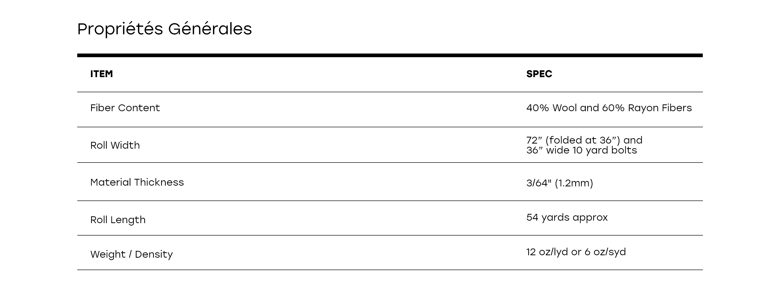- Largeur du rouleau : 72 po (plié à 36 po; des marques de pliage peuvent être visibles)