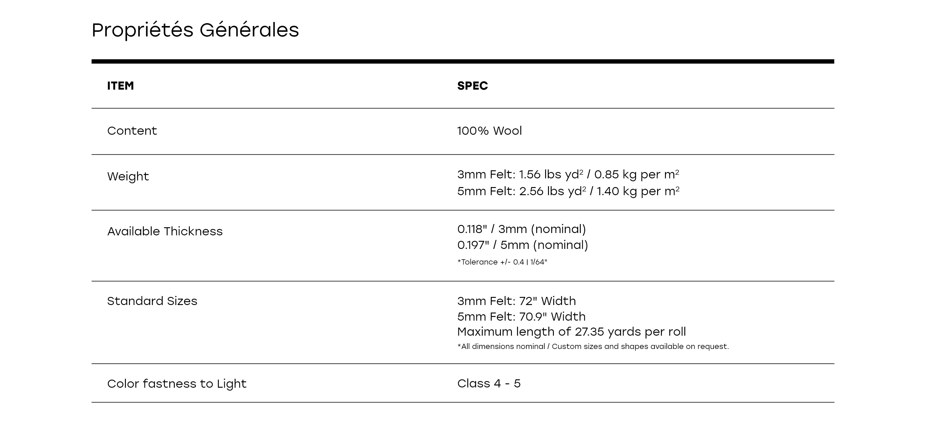 Remarque : Les couleurs affichées en ligne ou imprimées peuvent différer légèrement du feutre réel. Si la précision de la couleur est essentielle pour votre application, nous vous recommandons de demander un échantillon physique avant de passer votre commande.