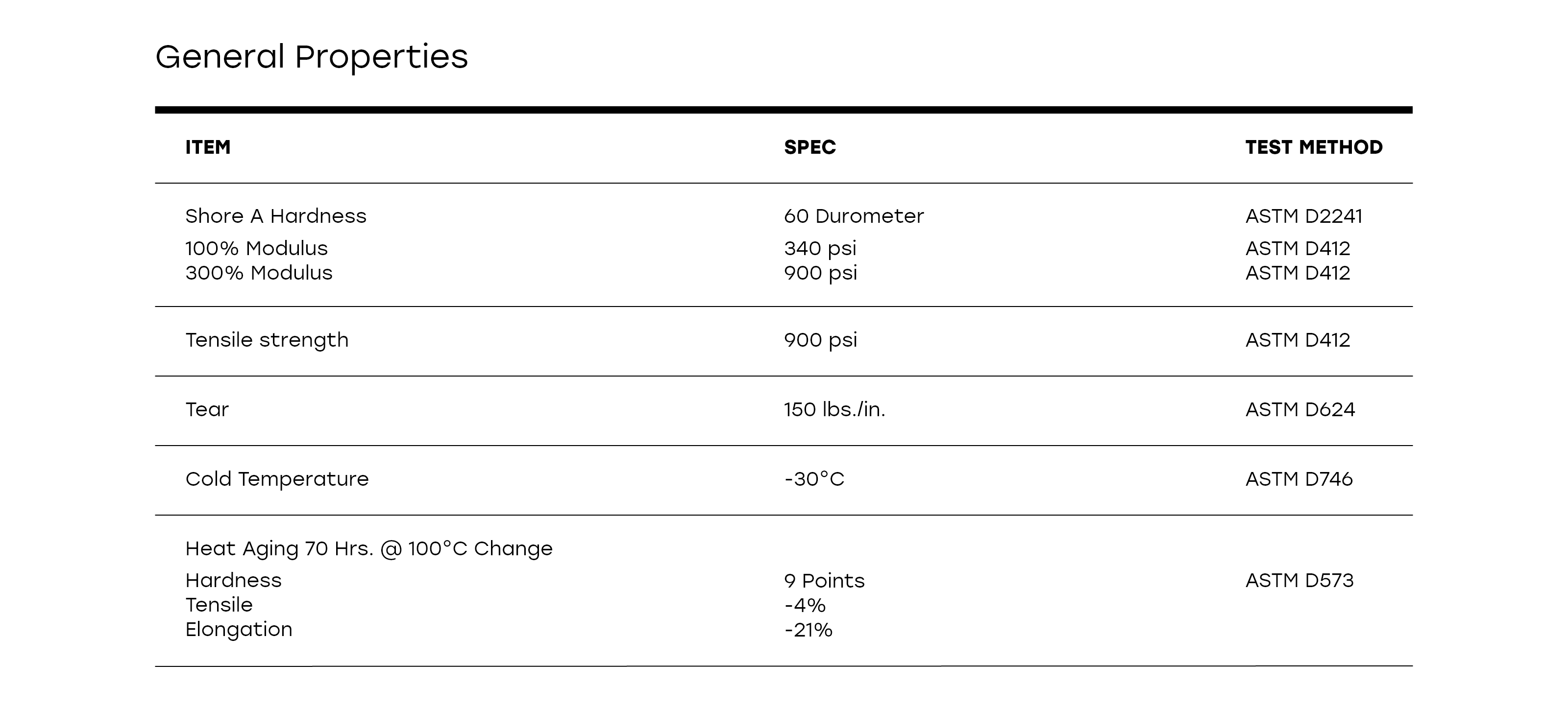 60 Duro Neoprene is a medium-hard rubber that balances durability with flexibility. On the durometer scale (0 = softest, 100 = hardest), a 60 rating means it can withstand pressure, abrasion, and repeated use without excessive deformation.